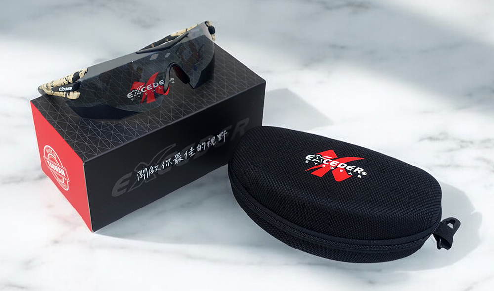 含運動太陽眼鏡、彩盒、品牌專屬運動眼鏡盒、眼鏡擦拭布、眼鏡保養及鏡片拆裝步驟說明書